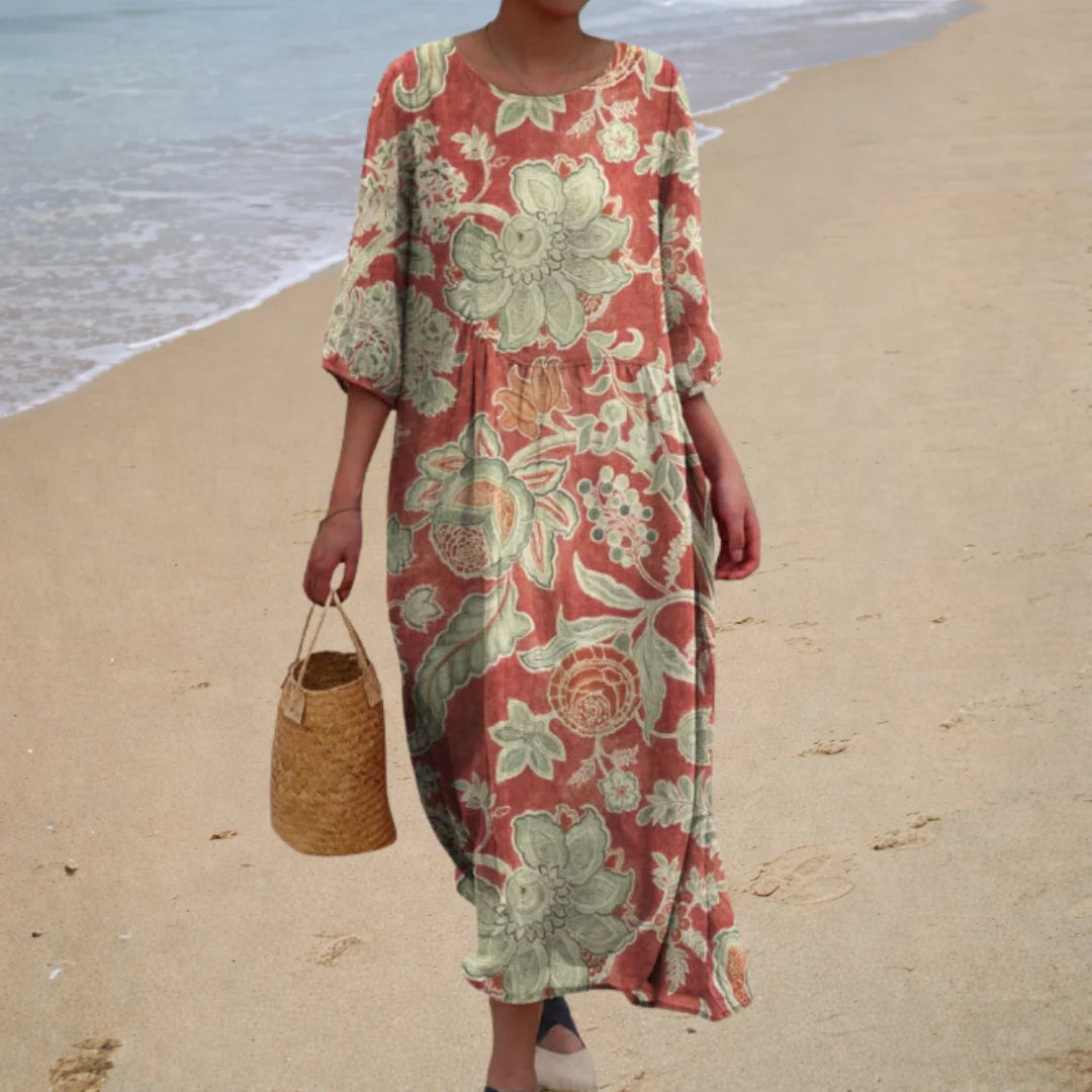 The perfect dress when you want to be feminine without complicating your life. Its flowing cut gently follows the body without constricting or marking, allowing you to feel immediately comfortable and elegant. The result: a complete outfit in one easy move, ideal for those longer days and outings as the weather warms up.